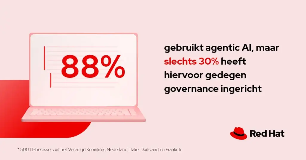 Red Hat deelt vandaag nieuwe onderzoeksresultaten over hoe Nederlandse organisaties omgaan met AI-soevereiniteit. Het onderzoek bevat ook resultaten uit Frankrijk, Duitsland, Italië en het Verenigd Koninkrijk en laat een duidelijke kloof zien tussen voorbereiding en veerkracht. Want hoewel 58% van de Nederlandse IT‑beslissers aangeeft een duidelijke exitstrategie te hebben voor het geval hun primaire AI‑leverancier de toegang tot diensten beperkt, verwacht 37% van deze organisaties dat zo’n scenario alsnog een behoorlijke tot aanzienlijke impact op de bedrijfscontinuïteit zal hebben.