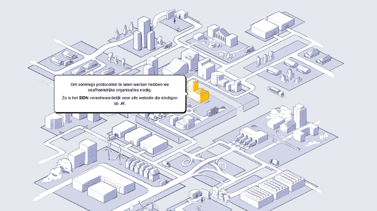 Vier groepen ontwer­pers geven met online visua­li­sa­ties meer inzicht in onze inter­net­in­fra­struc­tuur. De visua­li­sa­ties kwamen tot stand met steun van SIDN Labs en SIDN fonds. Ze geven antwoorden op vragen als: “hoe werkt het internet eigen­lijk?”, “wat is de impact van het internet op ons leven en onze omgeving?” en “wat gebeurt er als we met één druk op de knop toegang verliezen tot Ameri­kaanse technologie?”.